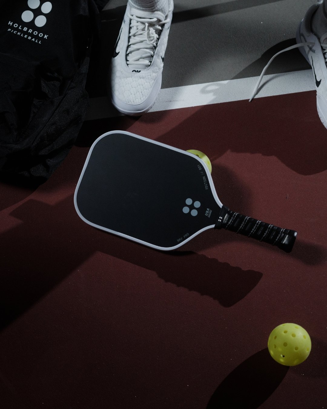 The Holbrook Mav Pro paddle enhances attacking power, controlled finesse, and cutting spin to your game