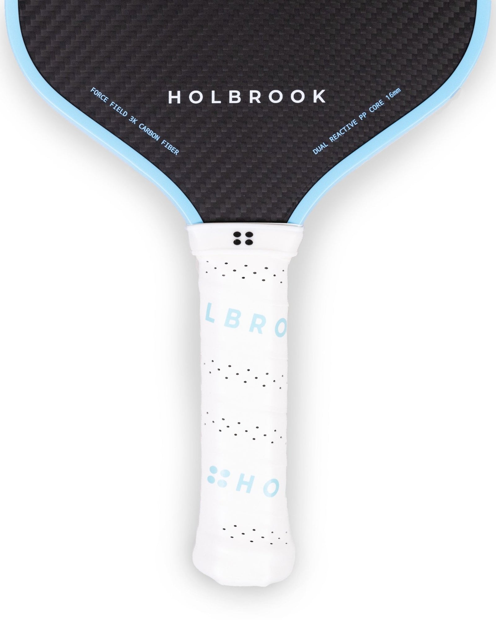 The Holbrook Mav Pro Blue paddle enhances attacking power, controlled finesse, and cutting spin to your game