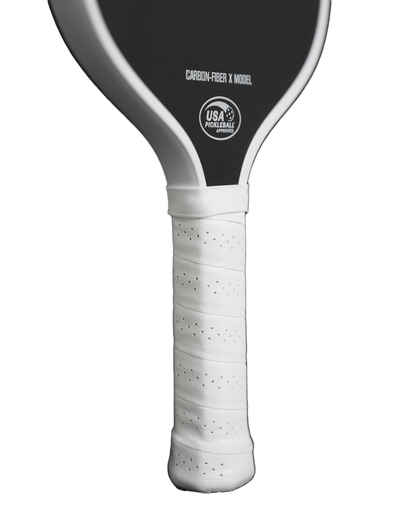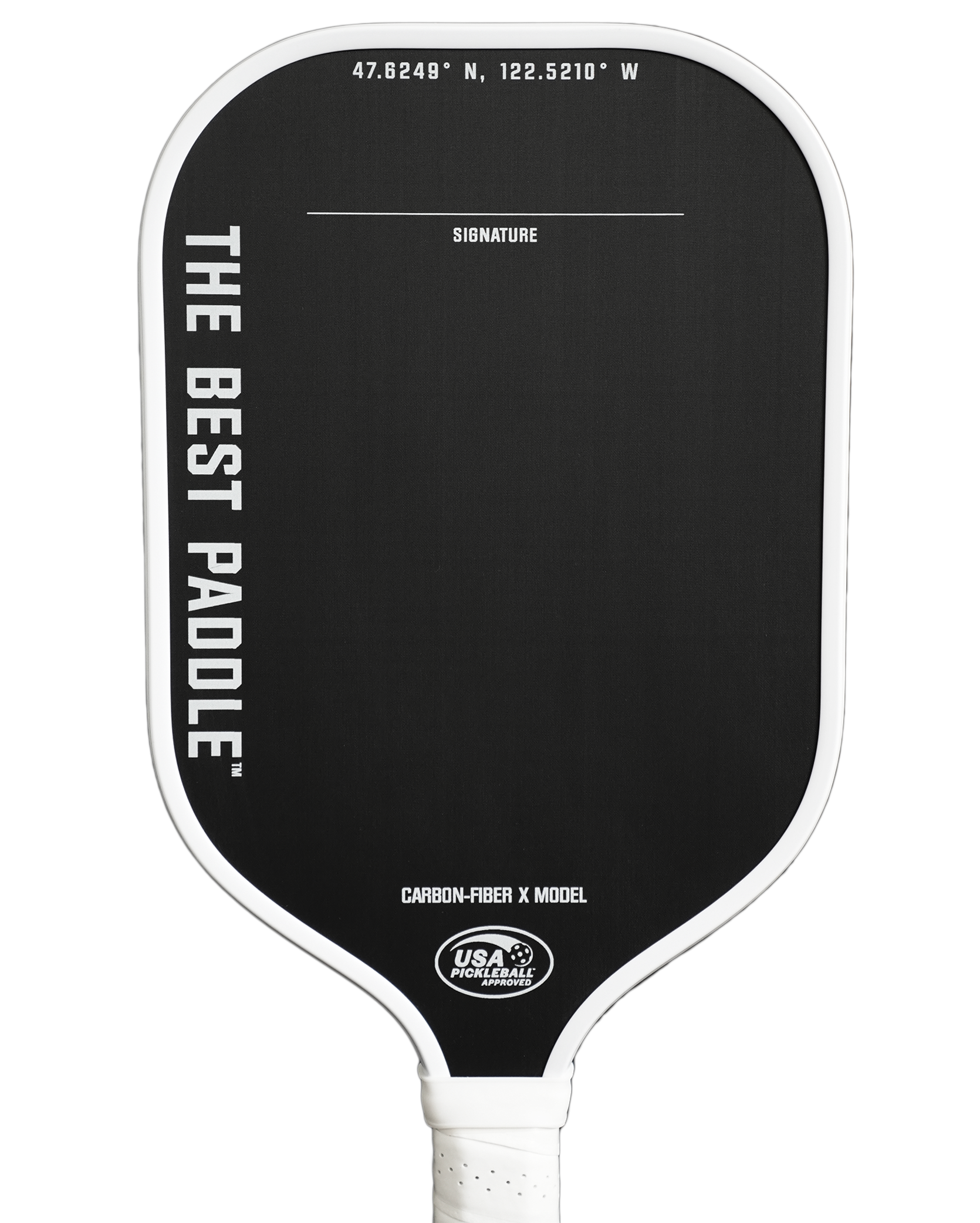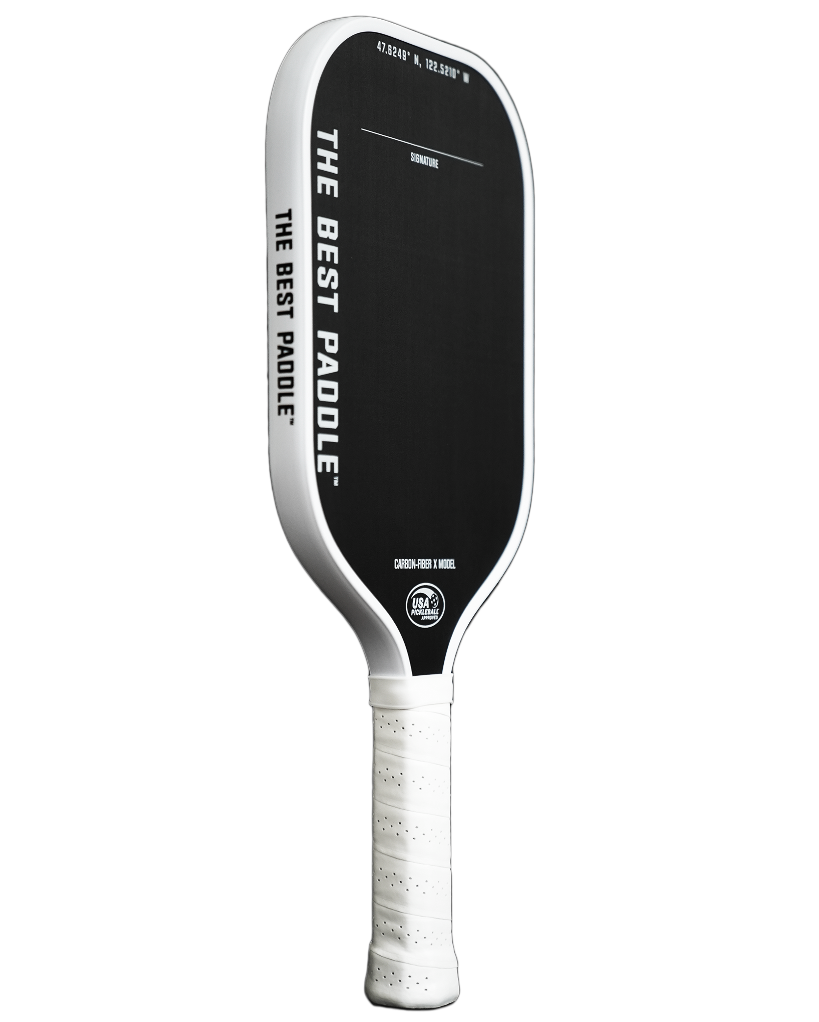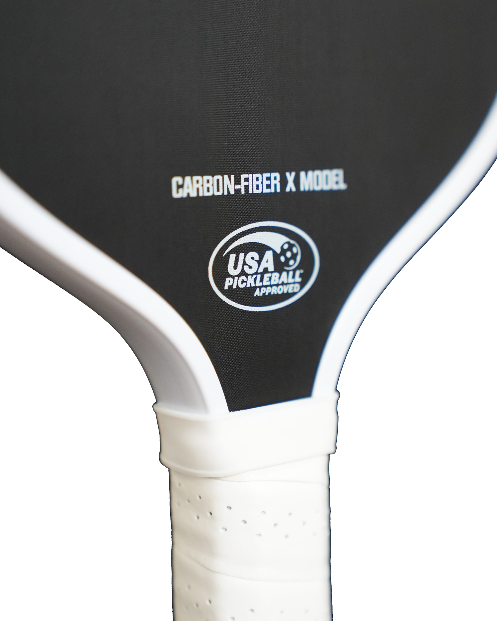 This is our Premium Carbon Fiber paddle with a 16mm polymer honeycomb core. The T700 Raw Carbon Fiber hitting surface is great for more ball spin and control. Most advanced players prefer this paddle.